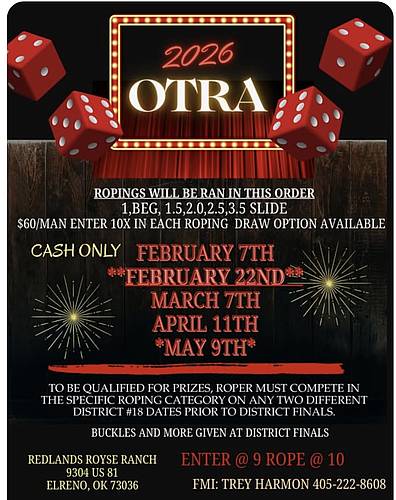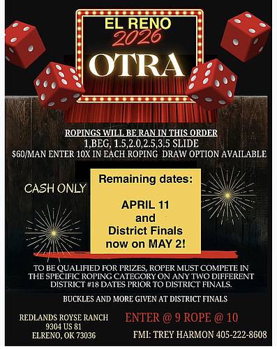 Location: Royse Ranch Arena - 9304 US 81 - El Reno, OK 73036