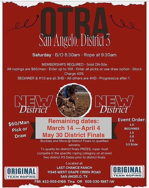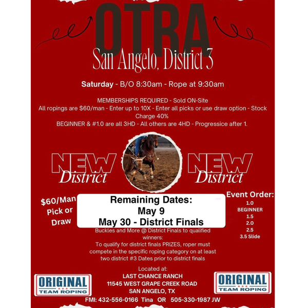 Buckles & more to be awarded at District Finals to qualified ropers. To be qualified for prizes, roper must compete in the specific roping category on any two different District #3 dates prior to District Finals.